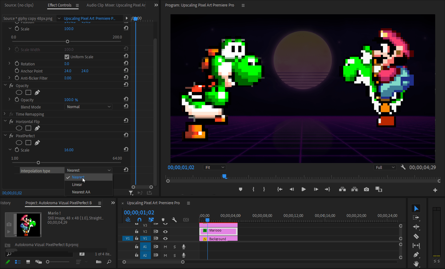 - For both After Effects and Premiere Pro where nearest neighbor upscaling isn't natively available