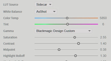 The BRAW Studio Panel BRAW Settings tab